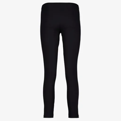 Zwarte sportlegging van Adidas voor dames. Deze comfortabele legging is gemaakt van 90% katoen en 10% elastaan. De legging heeft een smalle tailleband en is voorzien van Adidas 3 Stripes op de zijkant van de benen en een Adidas logo op het linker bovenbeen.
