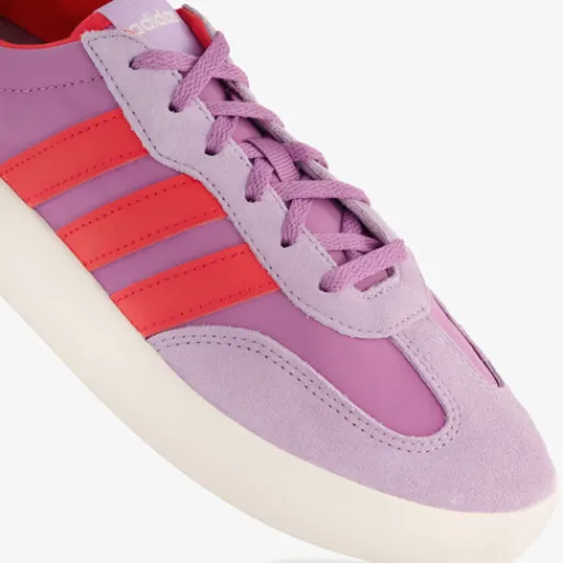 Roze-paarse Adidas Barreda Decode sneakers voor meisjes. Het bovenwerk is gemaakt van textiel en leer, het binnenwerk van textiel en de stevige zool met profiel is van rubber. Voorzien van een vetersluiting en een comfortabele, uitneembare binnenzool van textiel. De sneakers hebben een witte buitenzool en roze Adidas 3-Stripes op de zijpanden.