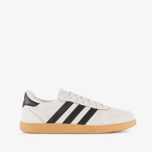 Wit-zwarte Adidas Breaknet Sleek sneakers voor dames. Het buitenwerk is gemaakt van imitatieleer, het binnenwerk van textiel en de stevige zool met profiel is van rubber. Voorzien van een vetersluiting en een vaste binnenzool met Luxe Foam. Deze zorgt voor demping en comfort. De sneakers hebben beige buitenzool, een zwarte inzet met merkopdruk op de hak en aan de zijkanten zijn de Adidas iconische 3-Stripes in het zwart aangebracht.