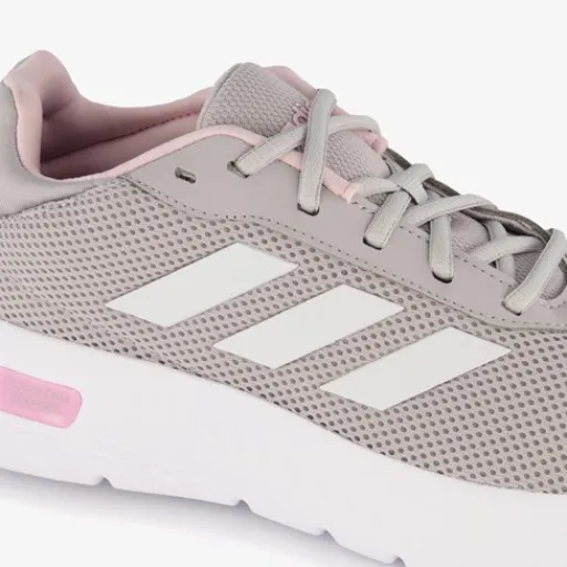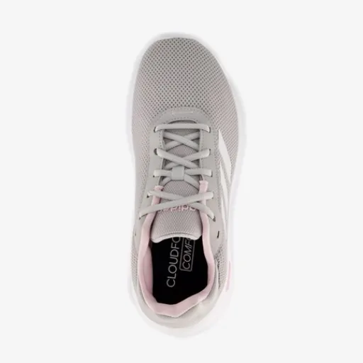 Grijze Adidas Cloudfoam Comfy sneakers voor dames. Het buitenwerk is gemaakt van mesh en textiel, het binnenwerk van textiel en de stevige buitenzool is van rubber. Voorzien van een vetersluiting en een comfortabele binnenzool van textiel. Deze is uitneembaar zodat je eventueel jouw eigen zolen in de schoenen kan dragen.