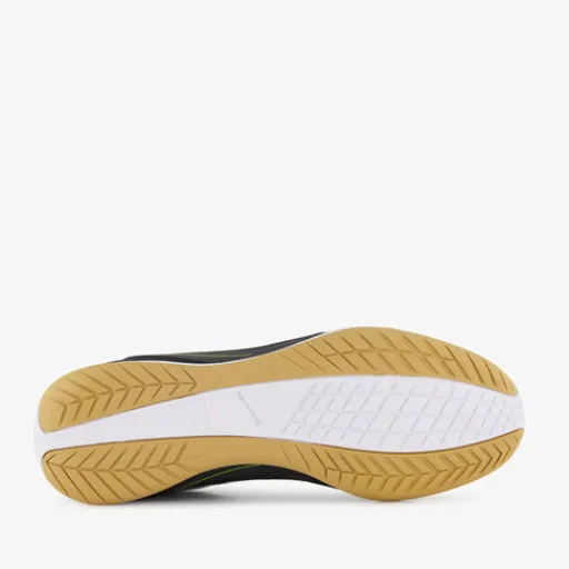 Zwarte Adidas Copa Indoor Court Club C zaalvoetbalschoenen voor heren. Het ademende buitenwerk is gemaakt van mesh en imitatieleer, het binnenwerk van textiel en de non-marking profielzool is van rubber. Voorzien van een vetersluiting en een uitneembare binnenzool van textiel. De zaalschoenen hebben een wit-bruine buitenzool, groene accenten en op de zijpanden zijn witte Adidas 3-Stripes aangebracht.