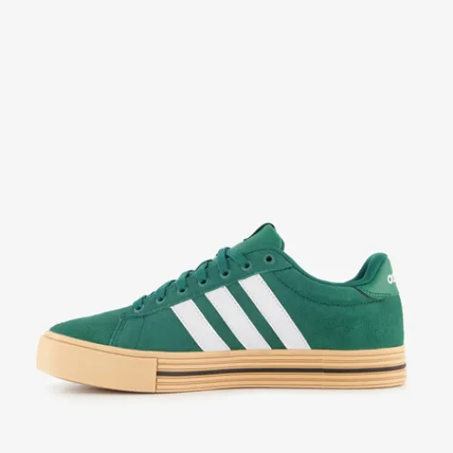 Groene Adidas Daily 4.0 sneakers voor heren. Het buitenwerk is gemaakt van imitatieleer, het binnenwerk van textiel en de stevige profielzool is van rubber. De sneakers hebben een beige buitenzool, witte merkopdrukken op het bovenwerk en op de zijpanden zijn de iconische Adidas 3-Stripes aangebracht. Binnenzool is niet uitneembaar.