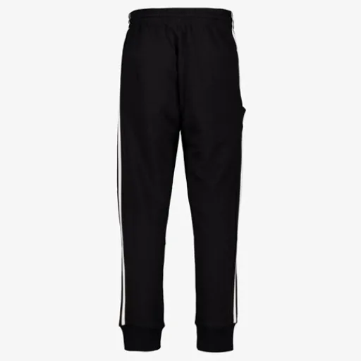 Zwarte Adidas Essentials 3-Stripes French Terry joggingbroek voor heren. Voorzien van een elastische tailleband met aantrekkoordjes en twee zijzakken. De broek heeft geribbbelde boorden met elastiek en een normale pasvorm. Op de zijkanten zijn de iconische Adidas 3-Stripes aangebracht en op het bovenbeek zit een merkopdruk. Gemaakt van 100% katoen.