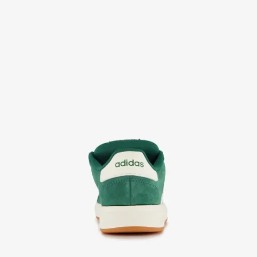 Groene Adidas Grand Court 00s sneakers voor jongens. Het buitenwerk is gemaakt van suède, het binnenwerk van textiel en de stevige profielzool is van rubber. Voorzien van een vetersluiting en een comfortabele binnenzool van textiel. Deze is niet uitneembaar. De sneakers hebben een bruine buitenzool, witte details en de iconische Adidas 3-Stripes op de zijpanden.