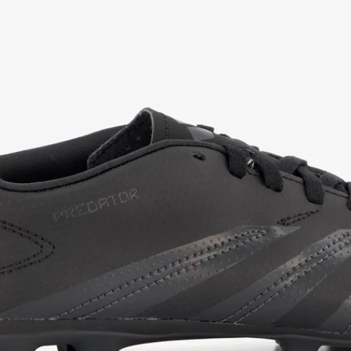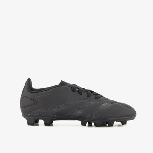 Zwarte Adidas Predator Club MG voetbalschoenen voor kinderen. Het buitenwerk met textuur is gemaakt van imitatieleer, het binnenwerk van textiel en de multiground (MG) buitenzoool met vaste noppen van rubber. De zool is geschikt voor kunst- en natuurgras. Voorzien van een vetersluiting en een comfortabele, uitneembare binnenzool van textiel.