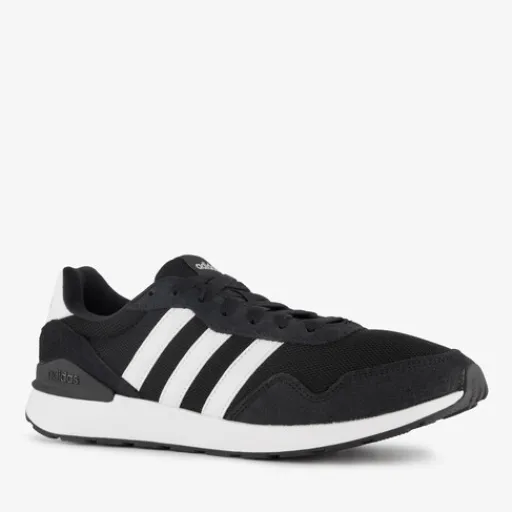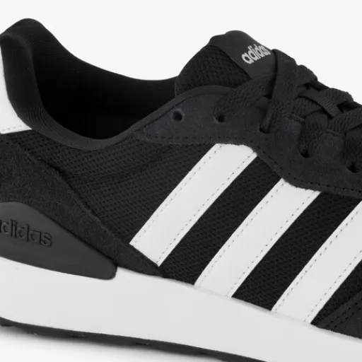 Zwart-witte Adidas Run 60s 4.0 sneakers voor heren. Het bovenwerk is gemaakt van textiel en leer, het binnenwerk van textiel en de profielzool is van rubber. Voorzien van een vetersluiting en een comfortabele binnenzool van textiel. Deze is niet uitneembaar. de sneakers hebben een wit-zwarte buitenzool en aan de zijkanten zijn witte Adidas 3-Stripes aangebracht.