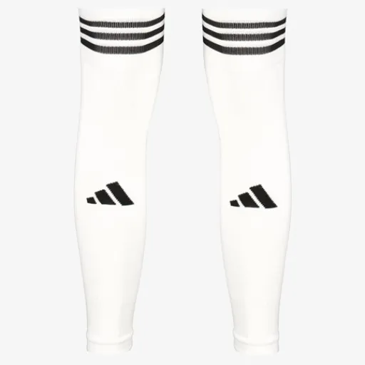 Witte Adidas Team Sleeve 23 voetbalsokken zonde voet voor volwassenen. De sokken hebben een aansluitende pasvorm, geribbelde boorden die de sleeves op de plek houden en ze zijn vervaardigd met AEROREADY technologie die je voeten droog en comfortabel houden. Gemaakt van 96% polyester en 4% elastaan.