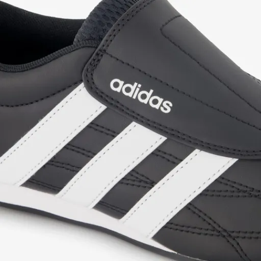 Zwarte Adidas Tekwen sneakers voor dames. Gemaakt van imitatieleer, een binnenwerk van textiel en een rubberen zool. De sneakers hebben een elastische sluiting en vast voetbed van textiel. Voorzien van witte merkaccenten op het bovenwerk.