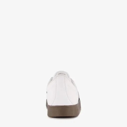 Witte Adidas Court 3.0 Base sneakers voor heren. Het buitenwerk is gemaakt van imitatieleer, het binnenwerk van textiel en de buitenzool met profiel is van rubber. Voorzien van een vetersluiting en een comfortabele binnenzool van textiel. Deze is uitneembaar zodat je eventueel jouw eigen zolen in de schoenen kan dragen. De Adidas Court 3.0 Base sneakers hebben een suède inzet bij de tenen, een bruine buitenzool en de iconische 3-Stripes in het zwart op de zijpanden.