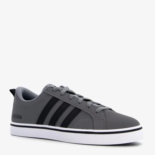 Grijze Adidas VS Pace heren sneakers. Gemaakt van textiel, een binnenwerk van textiel en de sneakers zijn voorzien van een stevige profielzool. De sneakers hebben vetersluiting en een aantreklusje op de hiel. Voorzien van zwarte Adidas 3-stripes op het buitenwerk en een merklogo op de hak en de tong.