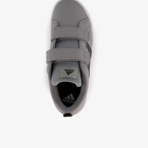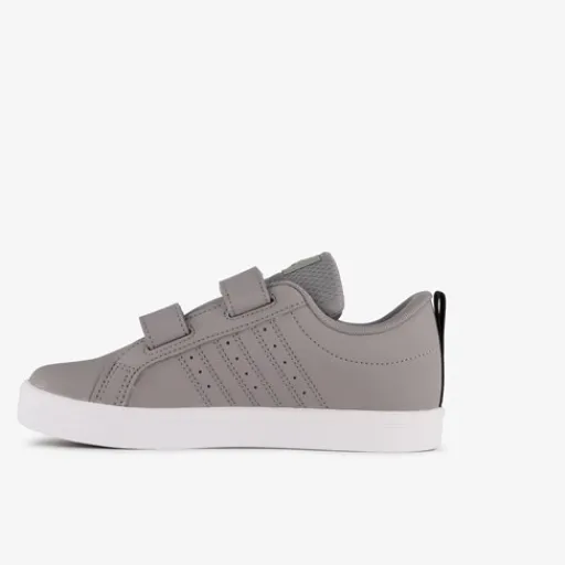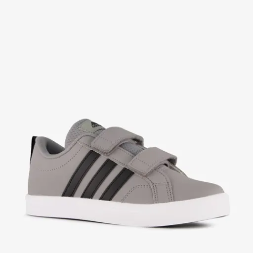 Grijze Adidas VS Pace 2.0 sneakers voor kinderen. Het buitenwerk is gemaakt van imitatieleer, het binnenwerk van textiel en een stevige profielzool is van rubber. Voorzien van twee klittenbandsluitingen en een comfortabele binnenzool van textiel. Deze is uitneembaar. De sneakers hebben de bekende Adidas 3-Stripes in het zwart aan de buitenkant.