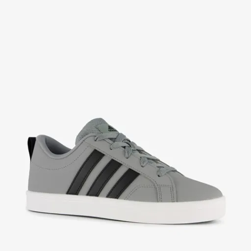 Grijze kinder sneakers van Adidas. De Adidas VS Pace K kinder sneakers zijn gemaakt van imitatieleer en hebben een binnenwerk van textiel. De sneakers hebben zwarte Adidas 3-stripes op het buitenwerk en een merklogo op de tong. De witte buitenzool met zwarte onderzijde is gemaakt van flexibel rubber.