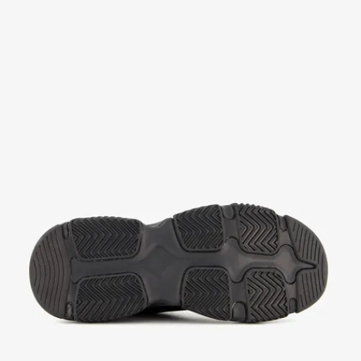 Zwarte dad sneakers voor dames. Gemaakt van imitatieleer met een binnenwerk van textiel en een rubberen profielzool. De sneakers hebben een vetersluiting en hiellusje voor een makkelijke instap. Het vaste voetbed is gemaakt van textiel en bevat Memory Foam voor extra comfort. De sneakers hebben een chunky zool.