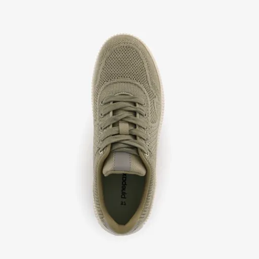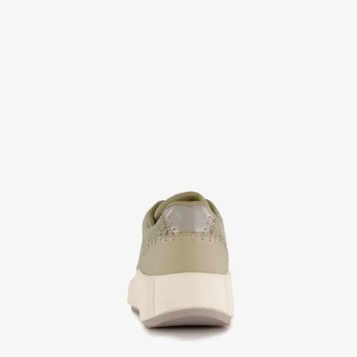 Olijfgroene sneakers voor dames. Gemaakt van textiel, een binnenwerk van textiel en een rubberen zool. De sneakers hebben een vetersluiting en uitneembaar voetbed van imitatieleer.
