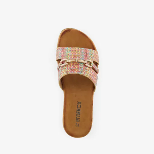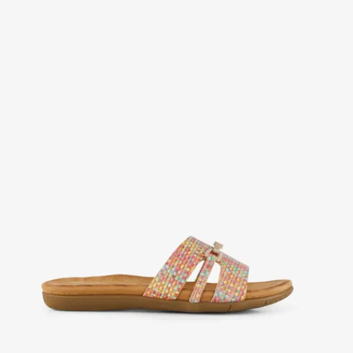 Multicolor slippers voor dames van Blue Box. Met een boven- en binnenwerk van imitatieleer en een rubberen zool. De slippers hebben een zacht, comfortabel voetbed van textiel en een goudkleurige gesp op het bovenwerk.