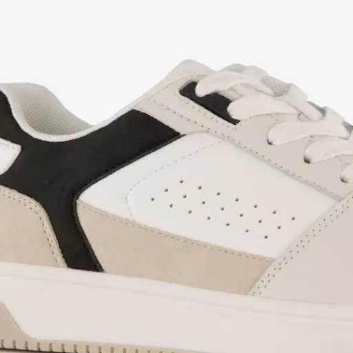 Lage, beige sneakers voor heren van Blue Box. Gemaakt van imitatieleer, een binnenwerk van textiel en een rubberen zool. De sneakers hebben een vetersluiting en een uitneembare binnenzool van textiel. Voorzien van witte en zwarte details op het bovenwerk.