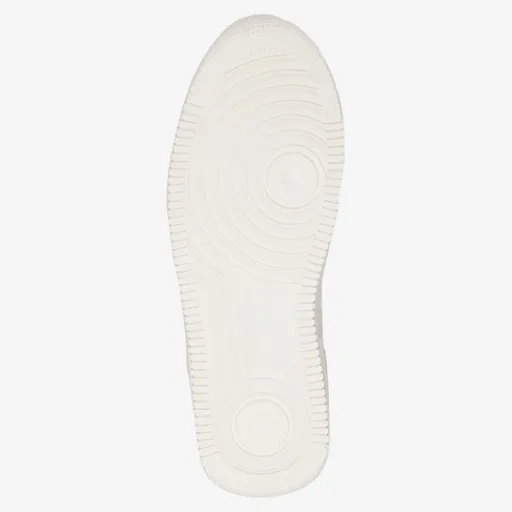 Witte sneakers voor heren van Blue Box. Gemaakt van imitatieleer met een binnenwerk van imitatieleer en een stevige profielzool van rubber. De sneakers hebben een vetersluiting en comfortabele binnenzool van leer. Deze is niet uitneembaar. Voorzien van een cognac bruin accent op de hiel en tong en een opdruk aan de buitenzijde.