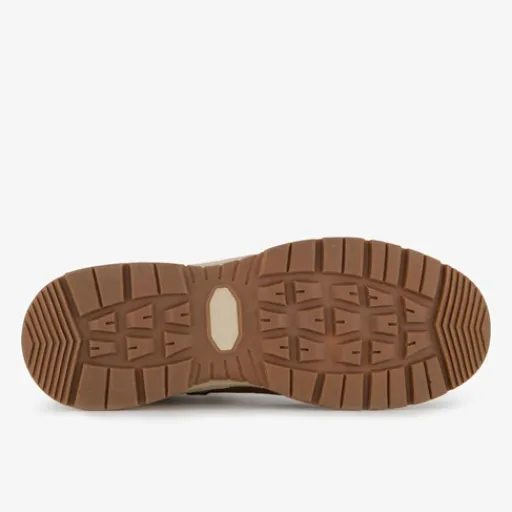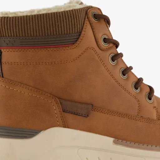 Bruine veterboots voor heren. Gemaakt van imitatieleer en -suede, een binnenwerk van imitatieleer en een rubberen zool. De boots hebben een vetersluiting en uitneembaar voetbed van textiel.