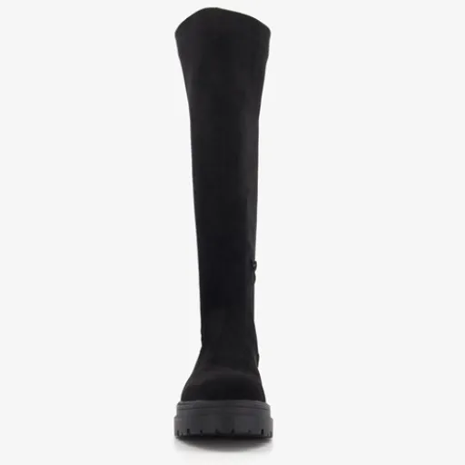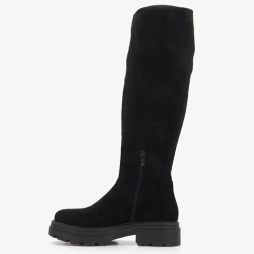 Stoere, hoge stretch boots van Blue Box. Gemaakt van imitatiesuede, een binnenwerk van textiel en een rubberen zool. De boots hebben een halve ritssluiting aan de binnenzijde en een vast voetbed van imitatieleer. De boots hebben een schachthoogte van 42 cm en een grove zool van circa 3 cm dik. Dankzij het stretch materiaal zijn de laarzen rekbaar en sluiten ze mooi aan.