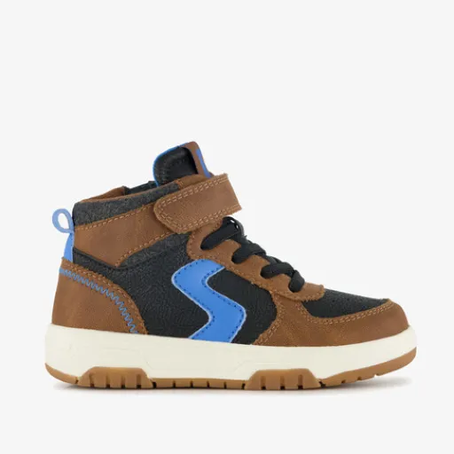 Hoge, bruin-blauwe sneakers voor jongens van Blue Box. Het buitenwerk is gemaakt van imitatieleer, het binnenwerk van textiel, en de stevige zool met profiel is van rubber. De sneakers hebben elastische veters en een klittenbandsluiting voor een optimale pasvorm, en een hiellusje voor een makkelijke instap. Ze zijn voorzien van een comfortabele, vaste binnenzool van textiel.