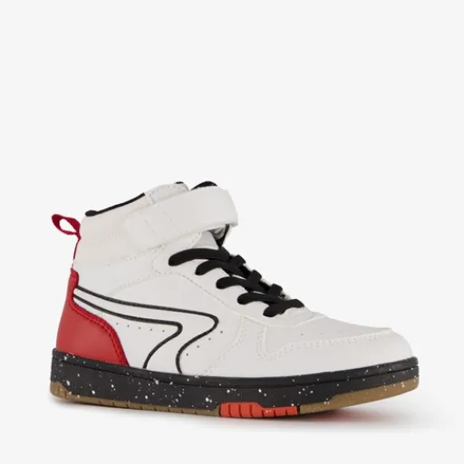 Stoere hoge jongens sneakers van Blue Box. Gemaakt van imitatieleer, een binnenwerk van textiel en een flexibele buitenzool. De sneakers zijn voorzien van elastische veters en een klittenbandje aan de bovenzijde. Zo zorg je voor de optimale pasvorm. De sneakers hebben zwarte en rode details op het buitenwerk. De binnenzool van textiel is uitneembaar. Zo kun je de eventueel aangepaste zooltjes in de schoenen dragen. Zelfs de buitenzolen van deze toffe sneakers zijn voorzien van een kleurtje. Shop ze nu!