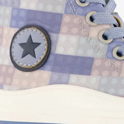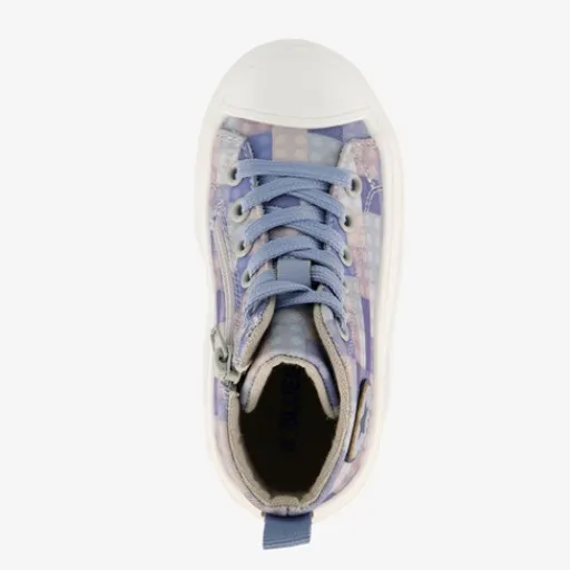 Hoge, blauwe sneakers van Blue Box voor kinderen. Het boven- en binnenwerk zijn gemaakt van textiel en de stevige zool met profiel is rubber. Voorzien van een veter- en ritssluiting voor een optimale pasvorm en hiellusjes voor een makkelijke instap. De sneakers hebben een ruitprint op het bovenwerk, een opdruk van een sterk aan de buitenzijde en een witte buitenzool. Het comfortabele voetbed van textiel is niet uitneembaar.