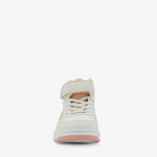 Hoge, beige meisjes sneakers uit de Blue Box collectie. Gemaakt van imitatieleer met een binnenwerk van textiel en een stevige profielzool van rubber. Voorzien van elastische veters, een klittenbandsluiting en hiellusjes voor een fijne pasvorm en een makkelijke instap. Deze mooie meisjes sneakers worden versierd met roze en metallic gouden details op het buitenwerk. Het comfortabele voetbed van textiel is uitneembaar.