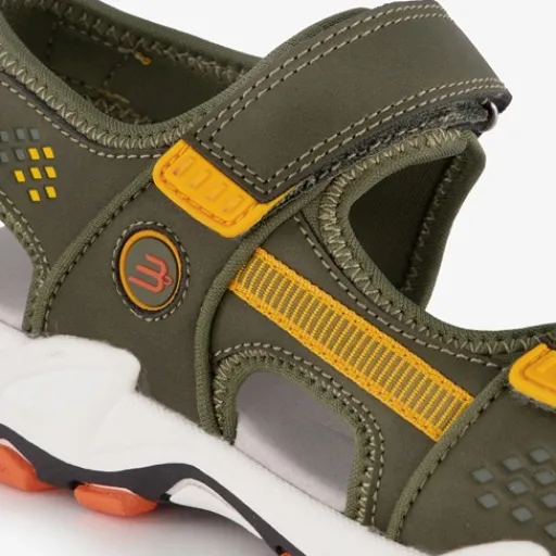 Groene sandalen met oranje details voor jongens. Het buitenwerk is gemaakt van imitatieleer, het binnenwerk van textiel en de stevige zool met profile is van rubber. De sandalen hebben klittenbandsluitingen bij de tenen en enkel voor een goede pasvorm en een makkelijke instap. Binnenzool is niet uitneembaar.