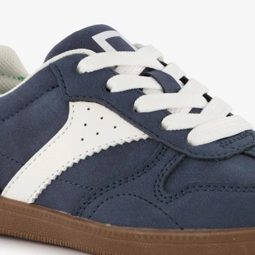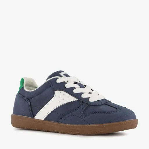 Blauwe Blue Box jongens sneakers. Gemaakt van imitatieleer met een binnenwerk van textiel en een stevige profielzool van rubber. Voorzien van een vetersluiting en een comfortabele binnenzool van textiel. Deze is niet uitneembaar. De sneakers hebben witte en groene details op het bovenwerk en een bruine buitenzool.