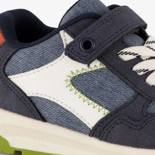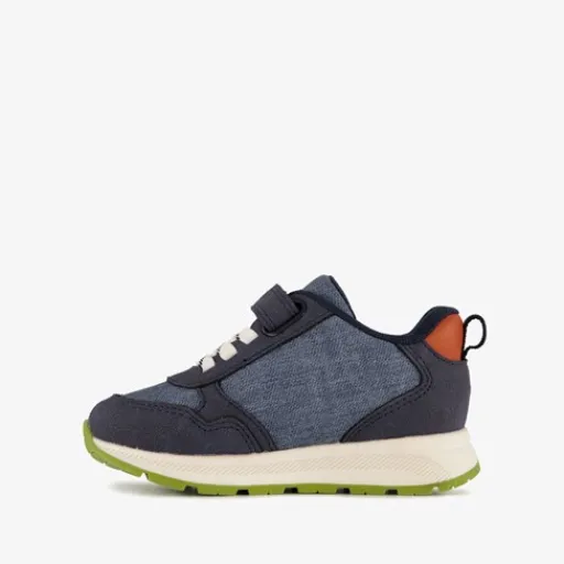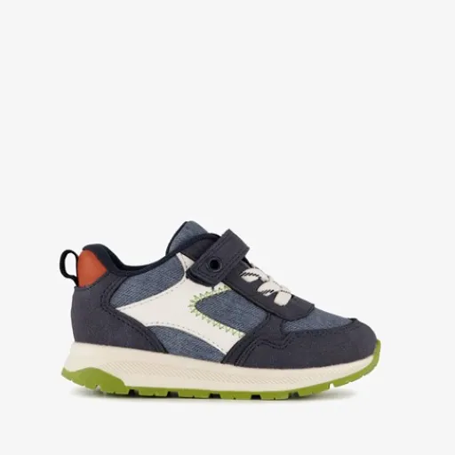 Blauwe jongens sneakers van Blue Box. Het buitenwerk van de schoenen is gemaakt van imitatieleer en wordt versierd met groene, bruine en witte details. Het binnenwerk is van textiel en stevige profielzool van rubber. De sneakers zijn voorzien van elastische veters en een klittenbandsluiting voor een optimale pasvorm en hiellusjes voor een makkelijke instap. Het comfortabele voetbed van textiel is niet uitneembaar.