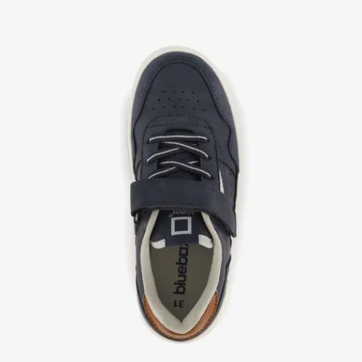 Donkerblauwe sneakers voor jongens uit de Blue Box collectie. Het buitenwerk is gemaakt van imitatieleer, het binnenwerk van textiel en de stevige zool met profiel is van rubber. Voorzien van elastische veters voor een optimale pasvorm. Het comfortabele voetbed van textiel is uitneembaar zodat je eventueel jouw eigen zolen in de schoenen kan dragen. De schoenen hebben een bruine inzet op de hielen en wit met grijze buitenzolen.
