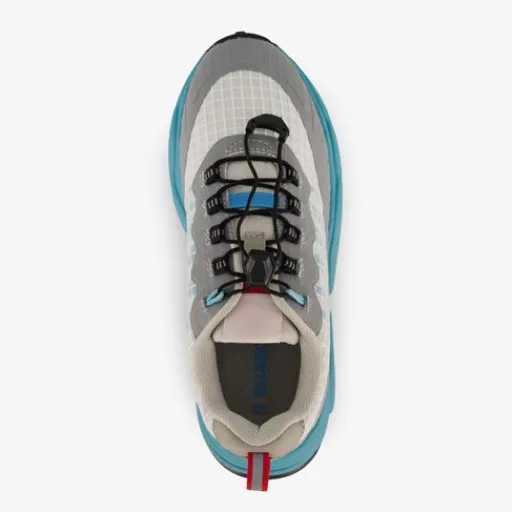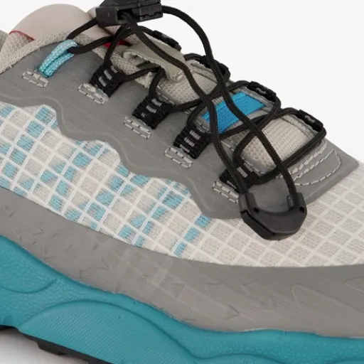 Grijze, sportieve sneakers voor jongens. Gemaakt van textiel, een binnenwerk van textiel en een rubberen zool. De sneakers hebben elastische veters met aantrekkoord en een hiellusje voor een makkelijke instap. Het voetbed is uitneembaar en gemaakt van textiel. Voorzien van blauwe details.