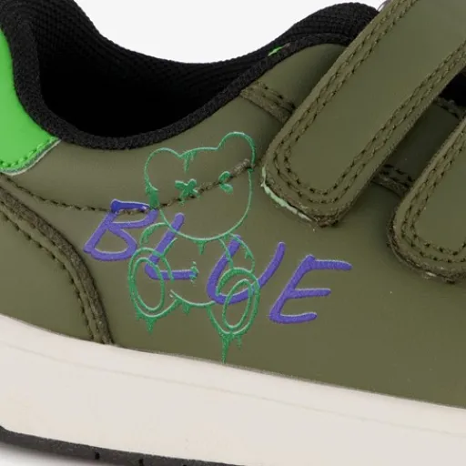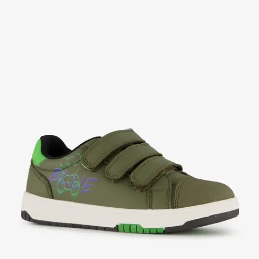 Groene jongens sneakers van Blue Box. Gemaakt van imitatieleer met een binnenwerk van textiel en een stevige profielzool van rubber. Voorzien van drie klittenbanden voor een goede pasvorm en een comfortabele binnenzool van textiel. Deze gave sneakers hebben neon groene details en een opdruk van een beer met tekst aan de buitenzijde. Binnenzool is niet uitneembaar.