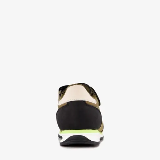 Legergroene Blue Box sneakers voor jongens. Het buitenwerk is gemaakt van imitatieleer, het binnenwerk van textiel en de stevige profielzool is van rubber. Voorzien van elastische veters en een klittenbandsluiting voor een optimale pasvorm. De comfortabele binnenzool van textiel is uitneembaar. Deze stoere sneakers hebben zwarte, witte en gele details op het buitenwerk.