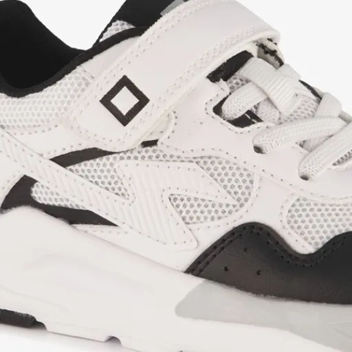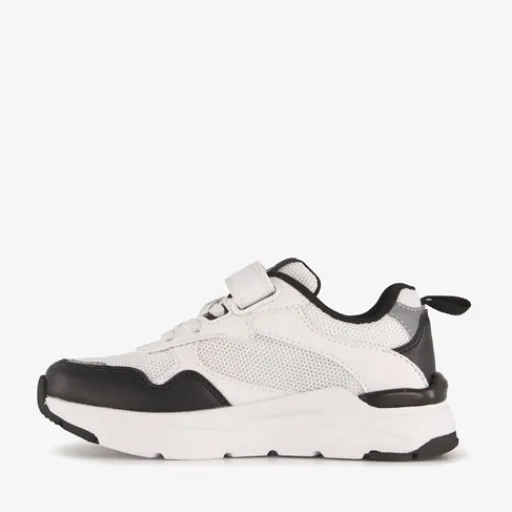 Wit met zwarte sneakers voor jongens van Blue Box. Het buitenwerk is gemaakt van textiel en imitatieleer, het binnenwerk van textiel en de stevige zool met profiel is van rubber. Voorzien van elastische veters, een klittenbandsluiting en hiellusjes voor een makkelijke instap. Het comfortabele voetbed van textiel is niet uitneembaar.