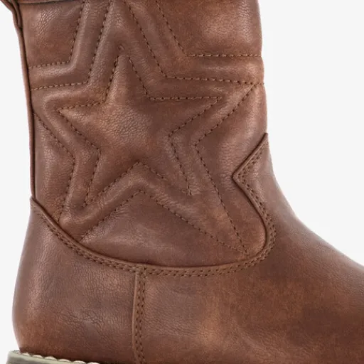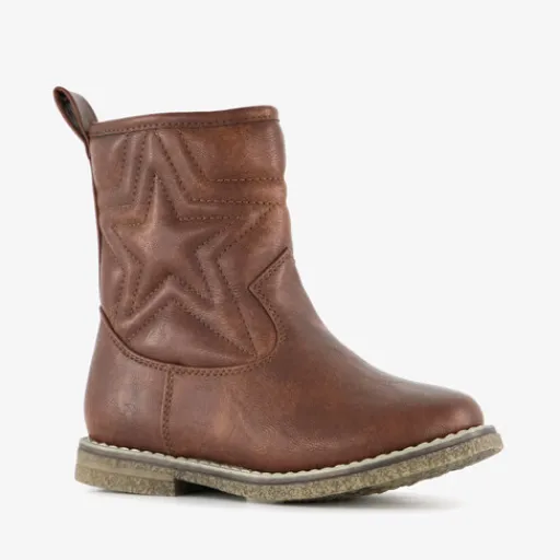 Bruine boots voor meisjes van Blue Box. Het buiten- en binnenwerk zijn gemaakt van imitatieleer en de stevige buitenzool met profiel is van rubber. De boots zijn voorzien van een ritssluiting aan de binnenzijde en een aantreklusje aan de achterzijde voor een makkelijk instap. Ze hebben een vaste binnenzool van textiel en aan de buitenzijde is een ster aangebracht. De schachthoogte van de laarsjes is 13 cm.