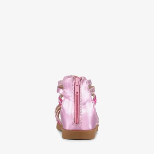 Metallic roze sandalen met glitters voor meisjes van Blue Box. Gemaakt van imitatieleer met een vaste binnenzool van textiel. Voorzien van meerdere bandjes over de wreef en een gesloten hak met ritssluiting.