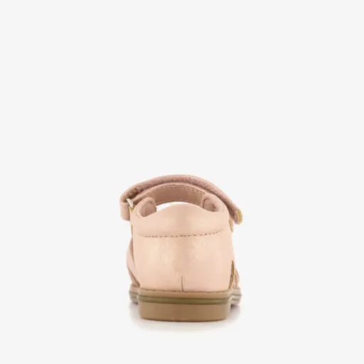 Roze sandalen voor meisjes van Blue Box. Met een boven- en binnenwerk van imitatieleer, rubberen zool en een vast voetbed van imitatieleer. De sandalen hebben een gesloten hiel en een wreefbandje met klittenbandsluiting. Voorzien van goudkleurige details en een vlinder op het bovenwerk.