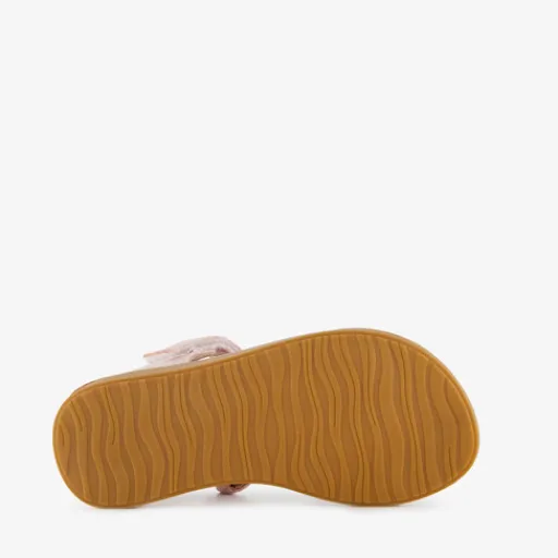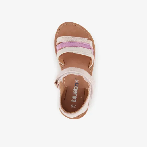 Metallic roze sandalen voor meisjes van Blue Box. Gemaakt van imitatieleer en met een vaste binnenzool van textiel. Voorzien van een band met klittenbandsluiting bij de tenen en een band met klittenbandsluiting bij de enkel. De sandalen hebben goudkleurige details en glitters op het bovenwerk.
