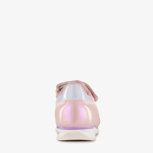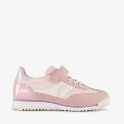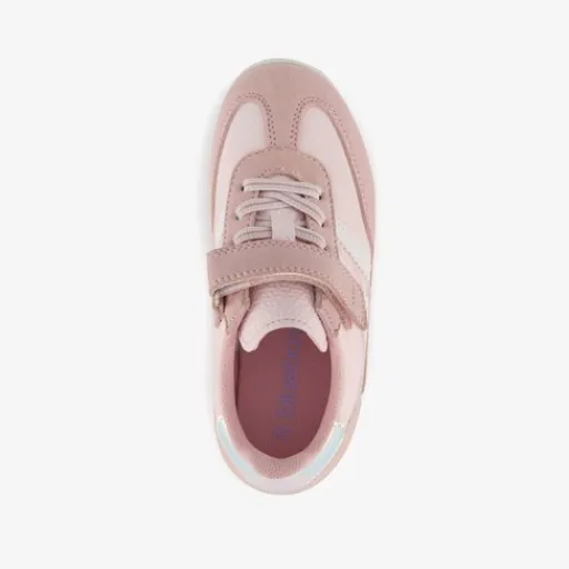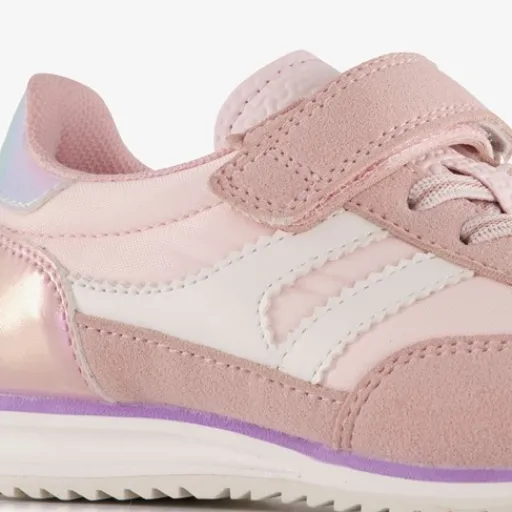 Roze meisjes sneakers van Blue Box. Het buitenwerk is gemaakt van imitatieleer, het binnenwerk van textiel en de stevige profielzool is van rubber. Voorzien van elastische veters en een klittenbandsluiting voor een optimale pasvorm. De sneakers hebben beige accenten en op de hakken zijn metallic inzetten aangebracht. Het comfortabele voetbed van textiel is uitneembaar zodat je eventueel jouw eigen zolen in de schoenen kan dragen.