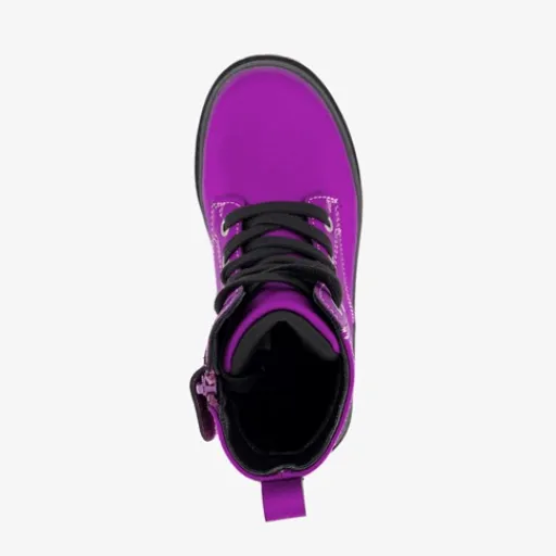 Paarse veterboots voor meisjes uit de Blue Box collectie. Gemaakt van imitatieleer met een binnenwerk van textiel en een stevige profielzool van rubber. Voorzien van een veter- en ritssluiting en hiellusjes voor een makkelijke instap. Deze mooie laarsjes hebben een zwarte buitenzool en een vast voetbed van synthetisch materiaal. Schachthoogte is 11 cm.