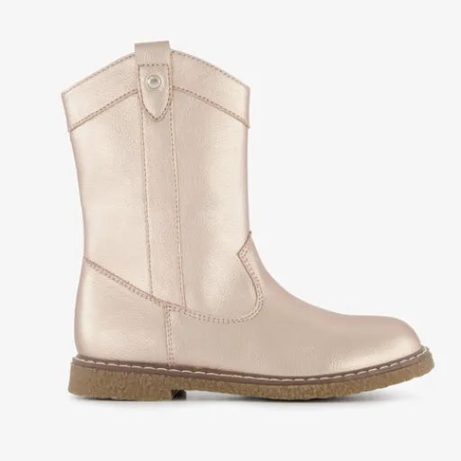 Goudkleurige western boots voor meisjes uit de Blue Box collectie. Het buitenwerk is gemaakt van imitatieleer, het binnenwerk van textiel en de stevige zool met profiel is van rubber. De boots zijn voorzien van een ritssluiting met een klittenbandje en een aantreklusje voor een makkelijk instap. Ze hebben een comfortabele binnenzool van textiel en een schachthoogte van 14 cm. De binnenzool is niet uitneembaar.