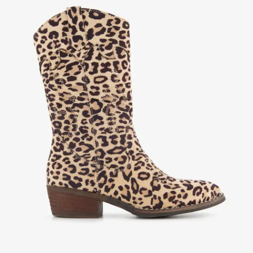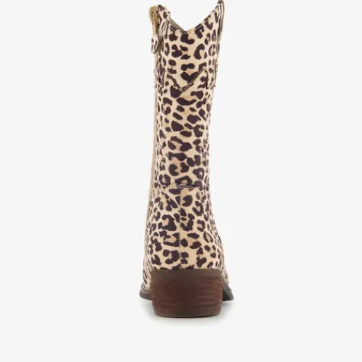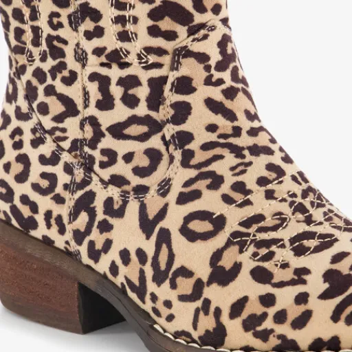 Beige western laarzen met panterprint voor meisjes uit de Blue Box collectie. Gemaakt van imitatieleer met een binnenwerk van imitatieleer en stevige zool van rubber. Voorzien van een ritssluiting met een klittenbandje en aantreklusjes aan de bovenzijde. Deze mooi boots hebben een crème witte schacht met borduursels. Schachthoogte is 18 cm en hakhoogte circa 4 cm. Binnenzool is niet uitneembaar.