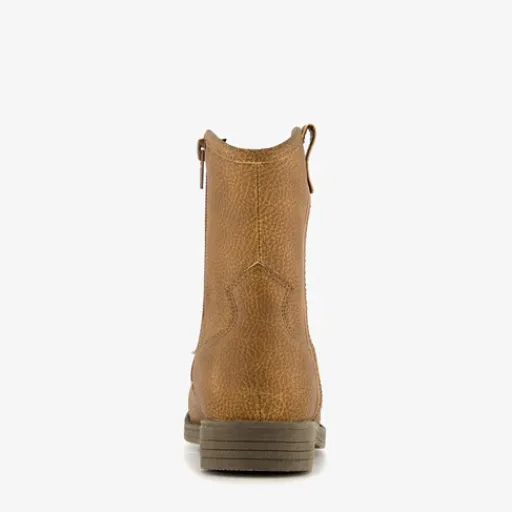 Cognackleurige western boots voor meisjes uit de Blue Box collectie. Gemaakt van imitatieleer met een binnenwerk van textiel en een stevige profielzool van rubber. Voorzien van een rits aan de binnenzijde en aantreklusjes aan de bovenzijde. De laarsjes zijn deels gevoerd en hebben geborduurde details op de wreef. Het comfortabele voetbed van textiel is niet uitneembaar. Schachthoogte is 13 cm.