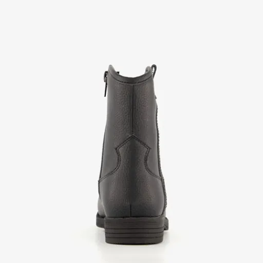Zwarte western boots voor meisjes uit de Blue Box collectie. Gemaakt van imitatieleer met een binnenwerk van textiel en een stevige profielzool van rubber. Voorzien van een rits aan de binnenzijde en aantreklusjes aan de bovenzijde. De laarsjes zijn deels gevoerd en hebben geborduurde details op de wreef. Het comfortabele voetbed van textiel is niet uitneembaar. Schachthoogte is 13 cm.