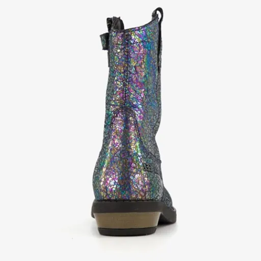 Braqeez Leren meisjes western boots zwart metallic Best