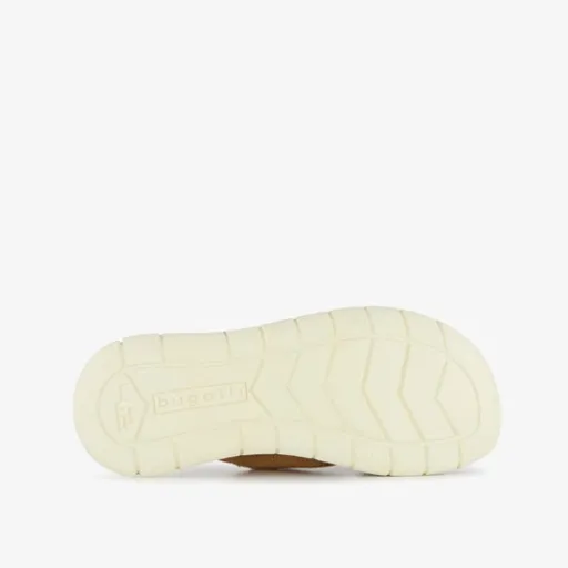 Cognac bruine slippers voor heren van Bugatti. Gemaakt van leer, een binnenwerk van textiel en een rubberen zool. De slippers hebben cross-over wreefbanden en een comfortabel voetbed van imitatieleer.