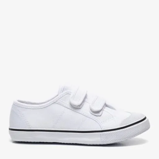 Witte gymschoenen voor jongens en meisjes. Gemaakt van textiel, een binnenwerk van textiel en een stevige antislipzool die uitglijden in de sportzaal voorkomt. De gymschoenen hebben twee klittenbandsluitingen voor een makkelijke instap en optimale pasvorm. De vaste binnenzool is gemaakt van textiel. Let op: het kan voorkomen dat je een gymschoen ontvangt met een andere merknaam. Echter is de schoen precies hetzelfde!