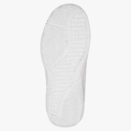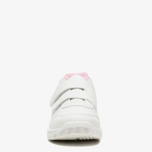 Witte gymschoenen voor kids van Chicane. Gemaakt van imitatieleer, een binnenwerk van textiel en een stevige profielzool. De gymschoenen hebben twee klittenbandsluitingen voor een aansluitende pasvorm. Het vaste voetbed is gemaakt van textiel. De gymschoenen hebben een stevige buitenzool die niet afgeeft, en zorgt voor een goede grip in de zaal.