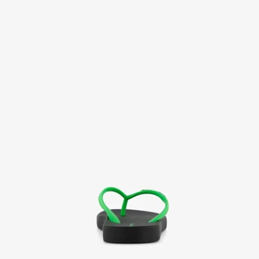 Zwarte teenslippers voor kinderen uit de Copacabana collectie. Gemaakt van synthetisch materiaal en voorzien van knalgroene teenbandjes.